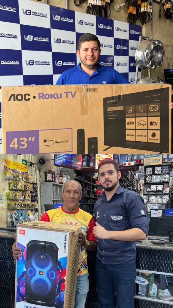 Nesse final de ano repleto de desafios, decidimos presentear 2 clientes nossos através do nosso sorteio, que teve como prêmio uma TV de 43” polegadas e uma JBL PARTYBOX. Agradecemos a todos os nossos clientes por participarem do nosso sorteio final de ano, Volksbus finaliza este ano com sentimento de gratidão e de superação.